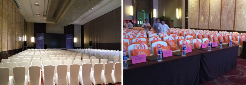 君通的伙伴們一早來到酒店,擺放展架,包裝禮品,布置會場,精心的為參會人員準(zhǔn)備茶歇,金碧輝煌的會場內(nèi)充滿了熱鬧的氣氛,led顯示大屏上震撼的視頻洋溢著君通人的熱情??蛻襞笥褌儏⒓拥臒崆楦邼q,報名踴躍,本次會議吸引了眾多外貿(mào)企業(yè)的老板和外貿(mào)經(jīng)理到來,簽到處客戶人頭攢動,以致整個會場高朋滿座,座無虛席,場面甚是壯觀。本次會議也備受各方領(lǐng)導(dǎo)的關(guān)注,有幸邀請到了無錫市商務(wù)局外貿(mào)處魏處,無錫市新吳區(qū)市場監(jiān)督管理局副局長周建忠先生,高新區(qū)商務(wù)旅游局張帆女士 無錫市新吳區(qū)放心消費創(chuàng)建辦公室主任、無錫市新吳區(qū)電子商務(wù)誠信聯(lián)盟秘書長顧煜先生,新吳區(qū)市場監(jiān)管局副局長滕小剛先生,無錫跨境電商中小企業(yè)商會執(zhí)行會長張曉棟先生,杭州思億歐總裁徐蘇源先生,無錫君通總經(jīng)理朱君康先生。在一雙雙充滿期盼的目光注視下,伴隨著激昂的出場音樂,讓我們共同來迎接這華麗而充實的一刻。
